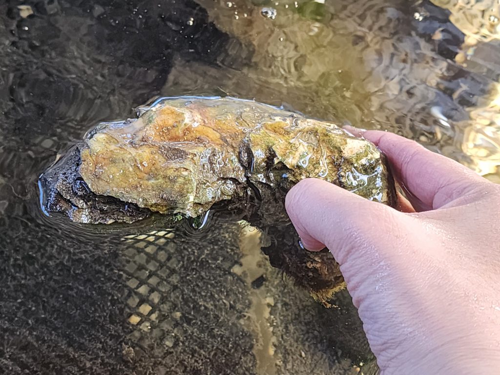 At the end of the tour, we were taught on how to shuck a raw oyster, and we were given six raw oysters to taste. The raw oysters were not from the farm itself, but from Washington state instead. I was honestly pretty nervous about shucking the oysters, even when they provided us the tools and gloves to do so. However, it was actually very satisfying when I managed to shuck one since the oyster shell literally pops open. I was so excited to try, and I have to say that they were the sweetest and freshest raw oysters I have ever eaten. I did not even feel queasy at the end either.
