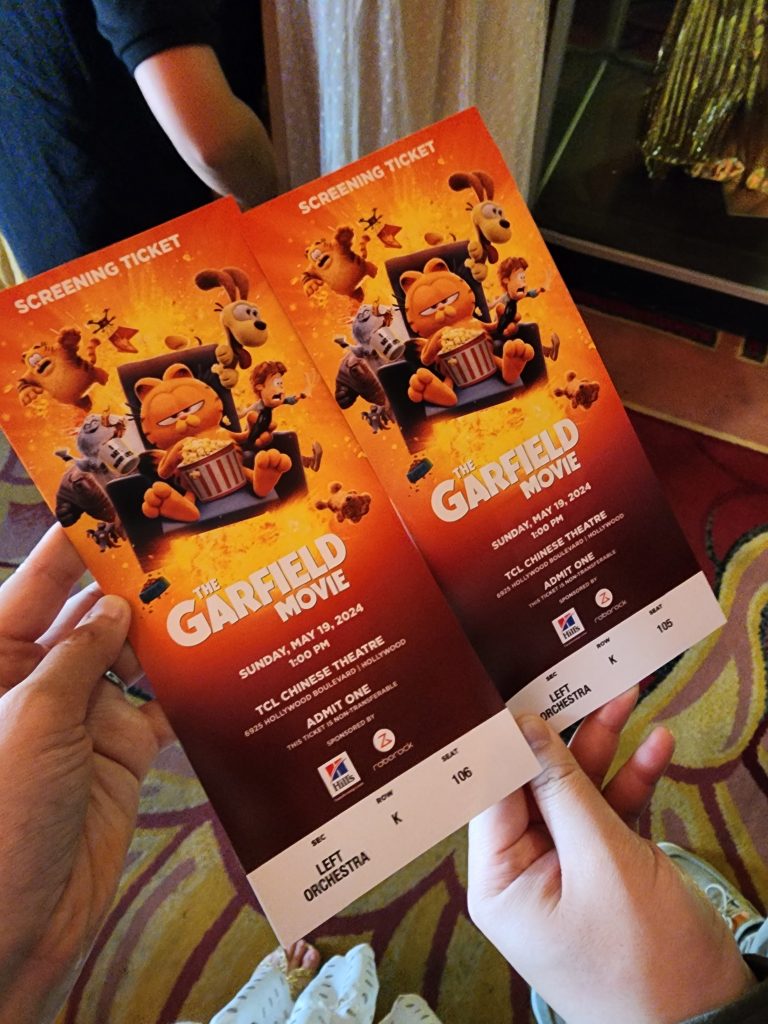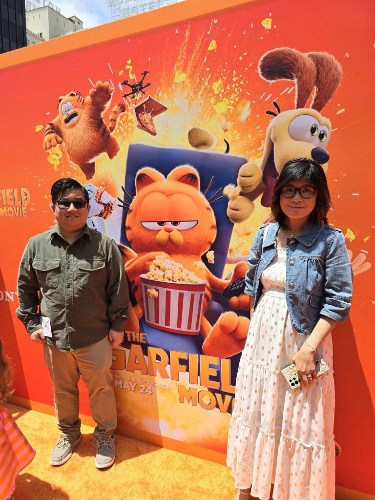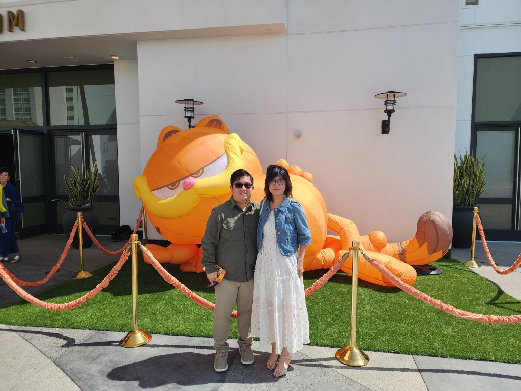 On May 19 Sunday, Tom and I were invited to go to world premiere of The Garfield Movie at the TCL Chinese Theatre in Hollywood. Yup, that’s right. Garfield the cat. I remember reading Garfield comics on the Los Angeles Times newspaper when I was younger. I personally have not seen any other Garfield movies, but I was excited because Tom’s work had helped with the production of the movie, and Tom will be in the credits!