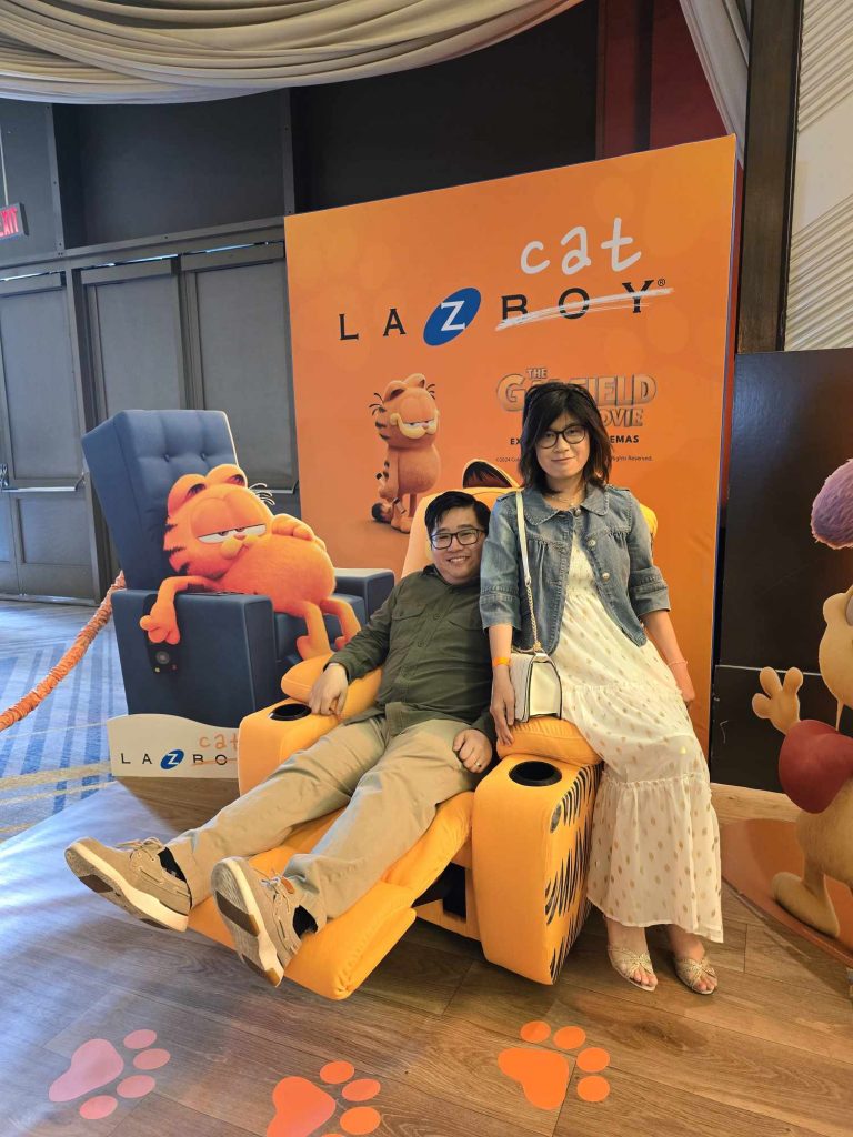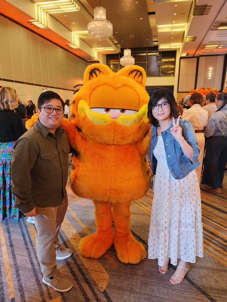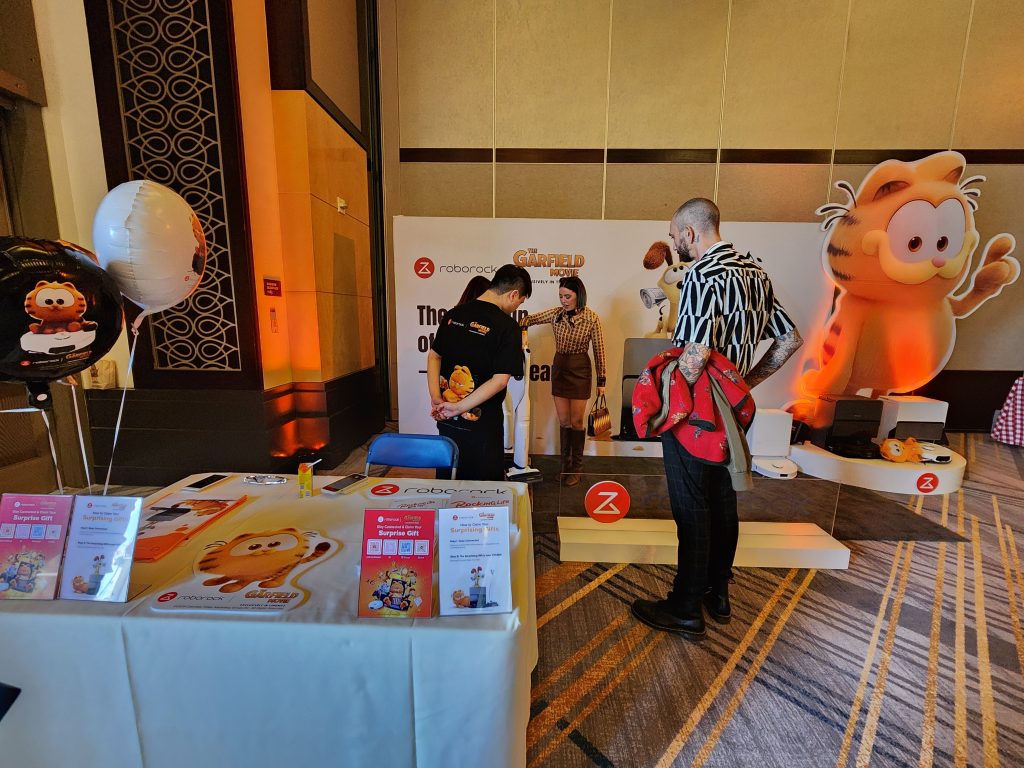 Tom and I were also invited to check out the after party. There were random booths to check out to advertise their sponsors like Roborock and La-Z-Boy. We also saw the Garfield mascot walking around, and I just knew I had to get a photo with it. It was so hard to get a photo, though, since all these kids started to crowd around. However, I still managed to get a photo because I knew that I will miss the chance if I didn’t do that. Sure enough, we didn’t see the mascot again for the rest of the event. We did see the director Mark Dindal from a distance, though, so that was cool.