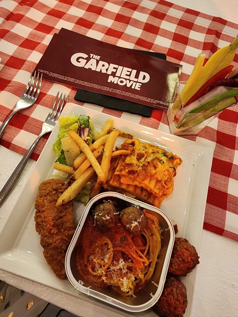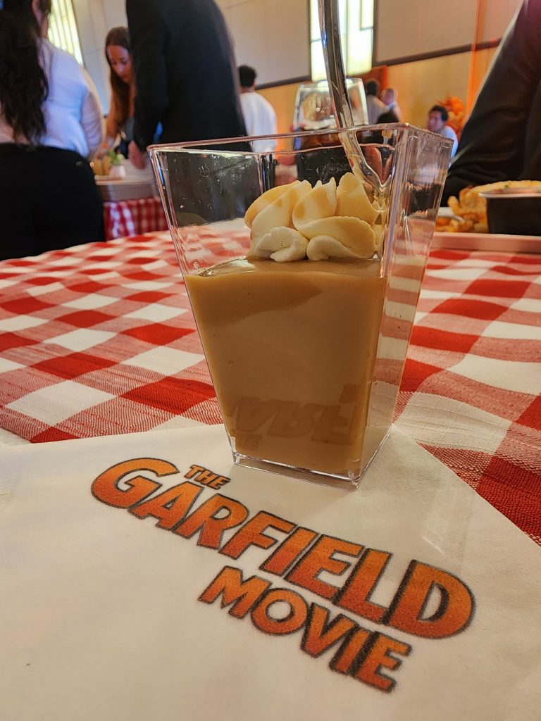 After party food is something that Tom and I often look forward to just because we love food. We had lasagna (you know this was a must), spaghetti, chicken tenders, fries, some vegetables like salad, and Garfield’s favorite dessert from the movie, butterscotch budino. I never had butterscotch budino, and I can tell you that I am not a fan. Maybe it is the rum flavor that caught me off guard, but I did not like it. Sorry, Garfield. More for you. I did like the lasagna, so I am happy to say that it was good.