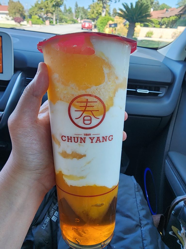 When I go back to the 626 area, I usually try to find a boba place I have not tried yet. This time I saw Chun Yang on Yelp, so Tom and I went. The plaza is such a small and tight space, but we got lucky to find parking right away. The drink I chose was not even on their regular menu. I think it was a mango smoothie with tea jelly. I really enjoyed their tea jelly because you can really taste the oolong tea flavors in it.
