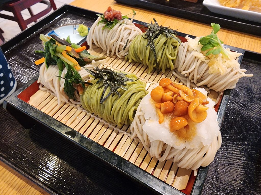 Tom and I decided to beat the heat by going to Micro Center in Tustin for a couple of hours before going out to eat. That way we did not have to stay at home and use our air conditioner. The air conditioning at Micro Center was just perfect, not too cold. I searched where to eat nearby, and I found this Japanese soba restaurant called Tanakaya. The photo of the soba sampler caught my eye. Tom ordered a Nabeyaki Udon with different things in it, like egg, oyster, pork and a side of shrimp tempura. We ended up sharing all of food, like he gave me some of his udon, and I gave him some of my soba. I enjoyed the broth of the udon since it was slightly smoky, but super flavorful. The soba was refreshing to eat in the summer heat. I liked the sampler since I was able to eat different kinds of soba they offered. I enjoyed the matcha one the most since the matcha flavor was really strong.