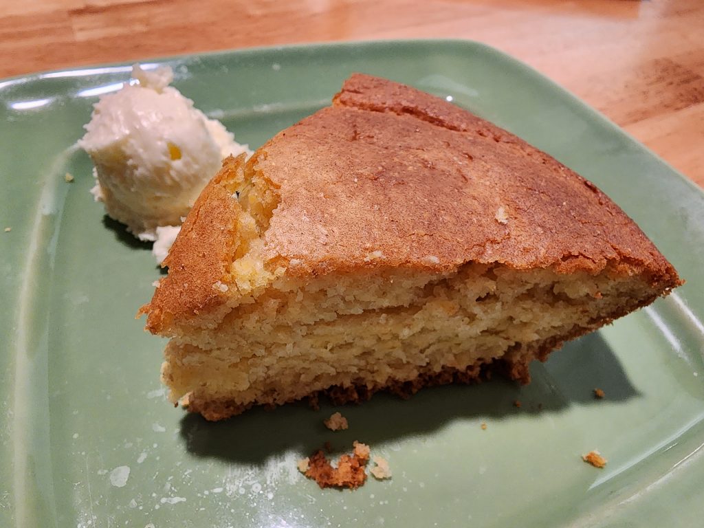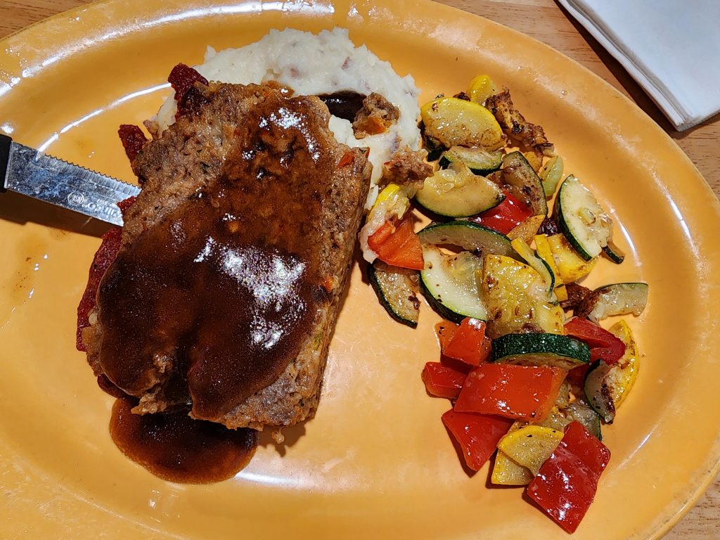 I was not sure what to cook on a Thursday night, also because I didn’t have groceries left in the refrigerator, so Tom and I went to Polly’s Pies to have dinner. I ordered a meatloaf and cornbread as my bread. It was a nice and simple dinner. No complaints here.