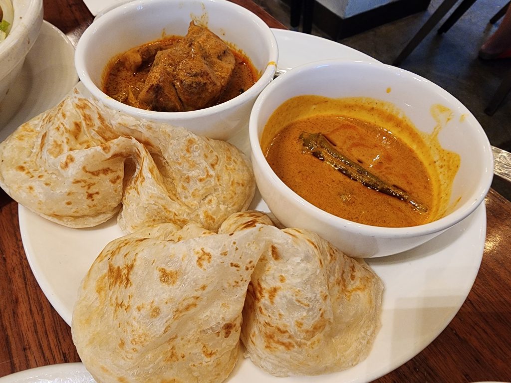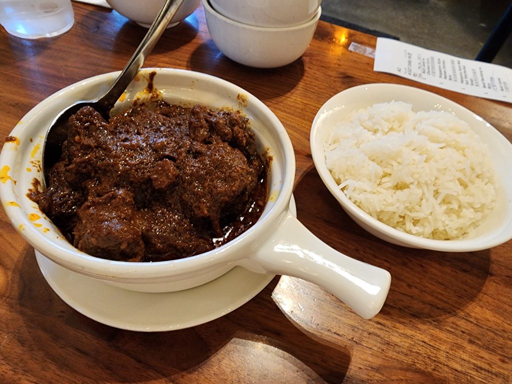 My mom was asking me what I wanted to go eat, and I suggested we go out to eat at Ipoh Kopitiam since I really enjoyed the food once before. I thought it would be fun to bring my mom and brother to an authentic Malaysian restaurant, too. My mom ordered the herbal soup since she wanted to see how it compares to how she makes it, and she seemed to enjoy it. My brother ordered the beef rendang, which he said it tasted familiar. Tom ordered the Hainan chicken, which you can’t go wrong with. I had the roti canai with chicken curry. It did not seem like a lot of food for me, but I had some of my mom’s soup, and I was full. I think my family enjoyed the food, but they did admit it was a little one note on flavor.