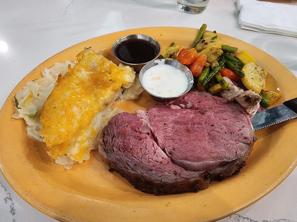 Fun fact: Polly’s Pies is having a prime rib dinner for $19.99 on weekends, starting Friday, so Tom and I decided to go eat there for a relatively cheap prime rib dinner. To our surprise, the prime rib was cooked medium rare just the way we like it (and requested), and it actually had a pretty good flavor to it. It did not taste like old steak at all, and the steak was actually tender. I also asked for a side of cornbread because it is not dry at all, and it is quite addicting.