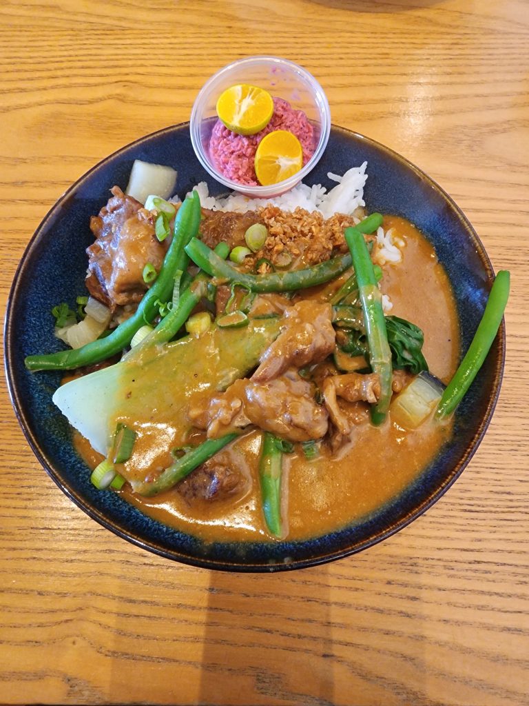 This month was Asian American and Pacific Islander Heritage Month (AAPIHM), so Bakers and Baristas have been making a different weekend dish showcasing an Asian dish. The first weekend was Filipino food with kare kare and ube latte. Tom and I don’t eat Filipino food often, so I was excited to try different cuisines. The kare kare was made out of braised beef, peanut sauce, oyster mushroom, bok choy, eggplant, long beans and bagoong (which is a fermented fish side dish). The braised beef was so tender, and the whole dish elevated when you added the bagoong into the whole thing. I really enjoyed it. The ube latte was very refreshing to eat with the kare kare.