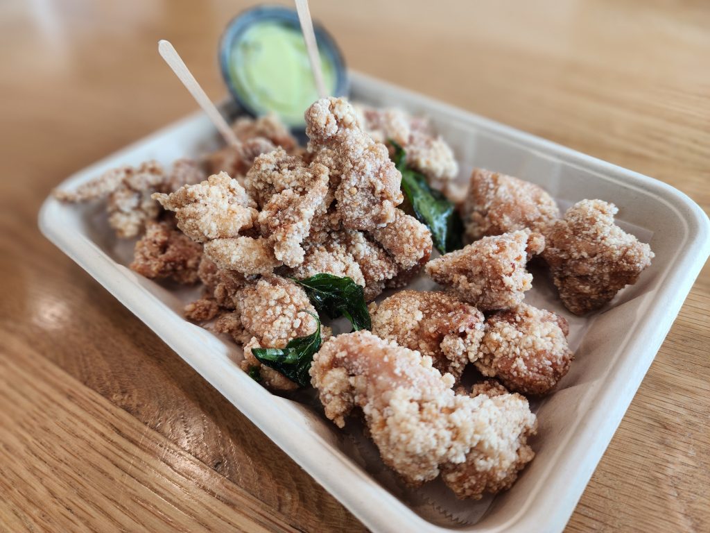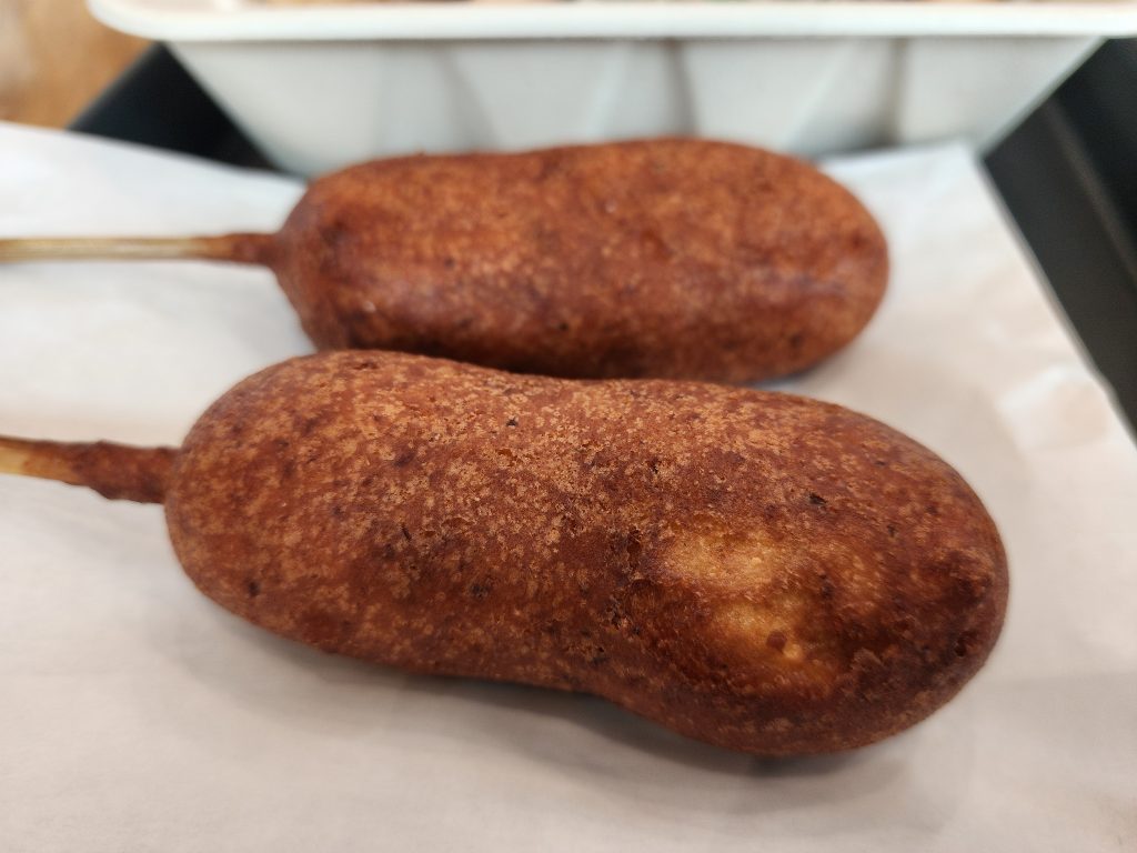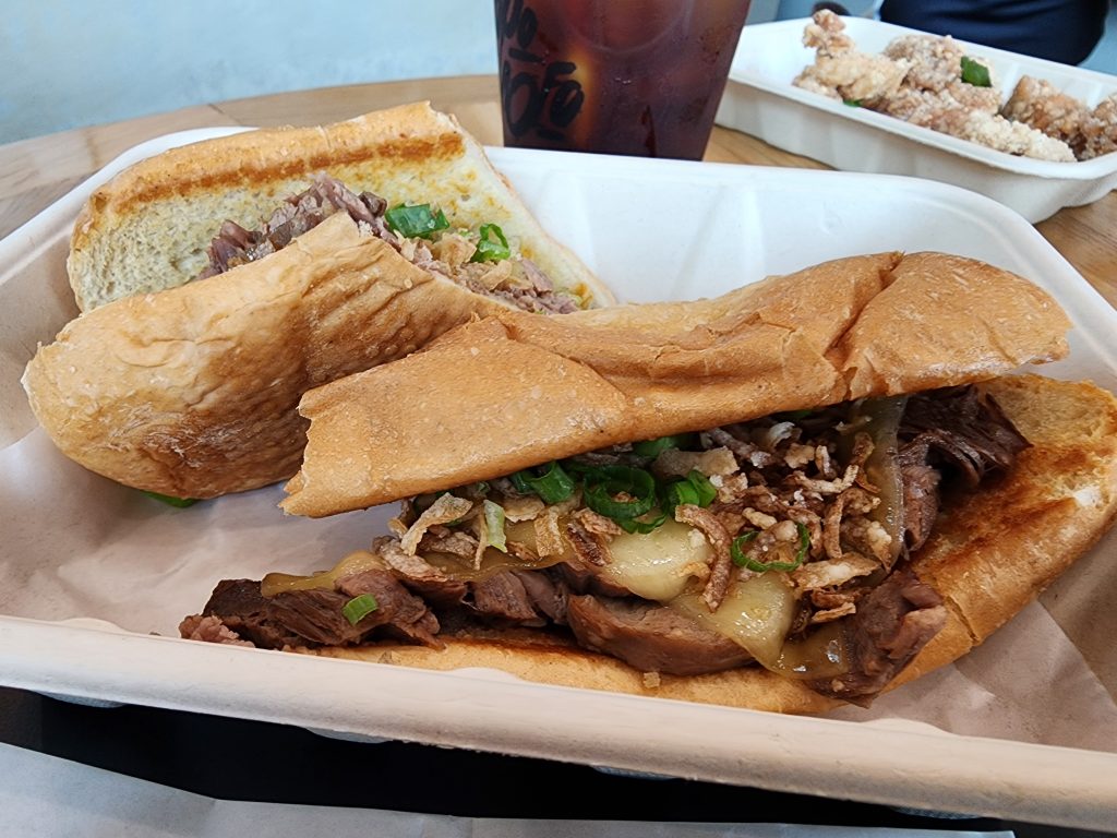 Since Tom and I missed the Taiwanese corn dogs last time, we went back to Bopomofo Cafe again and ordered it this time. The Taiwanese corn dog actually was pretty good, and I think the sauce (that is not pictured) actually makes the corn dog taste really good. We also ordered Taiwanese popcorn chicken and braised beef sandwich since we thought the corn dogs weren’t enough food. I also ordered the Orange Wang for my drink since I just wanted something sweet.